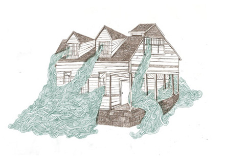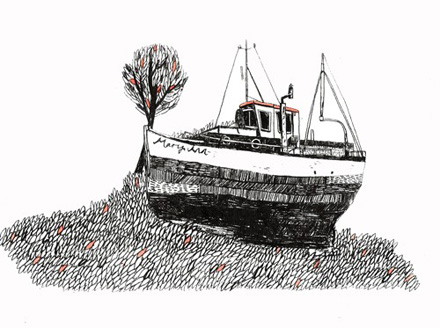 Oh gosh. I’m not sure that I have particular process when I start work. I try not to build up to doing a drawing too much. It seems when I plan to work I find it almost impossible to get going but when I start a little doodle absent-mindedly it tends to grow and I get sucked into drawing for hours. Often I work from texts (like with ‘I Am The Friction’ by Sing Statistics), which initially makes me sad that I’m not a writer but always helps in getting me enthused about work. I keep lists of sentences and song lyrics that I think would make a good drawing and then, when I’m running low on ideas, I fish one out to get me going again. I dream of one day drawing the whole of the Mariner’s Revenge Song by the Decemberists.