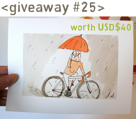I’ve been of Jaime’s work for awhile now & love the style! This print is wonderful, I love biking and love the rain- too perfect!