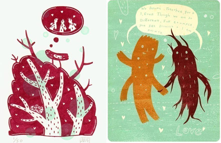 Nesting Limited Edition Gocco serigraph print; Opposites Attract print