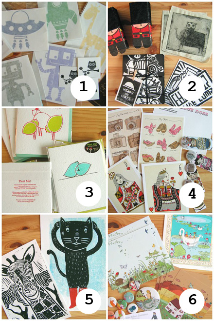 - Katie of What Katie Does sent in postcards + buttons of her illustrations;