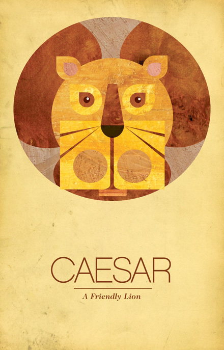 This wonderful print of Caesar the Lion was created from collaging images of different wood textures by Able, a branding and design firm located outside Philadelphia.