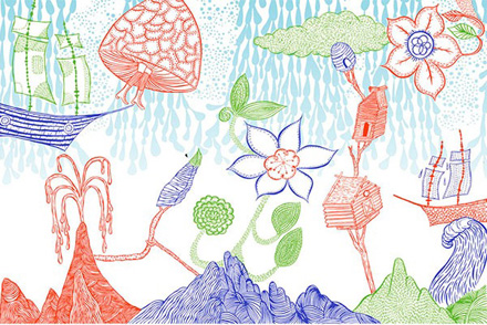 I’m ending the week with a beautiful and colorful illustrated piece by Sarajo Frieden entitled Clouds. You can see more and purchase her prints at Thumbtack Press and original art at Fine Art Publishing.