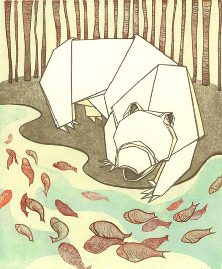 Loving the beautiful work done by Jing Wei, a Brooklyn-based illustrator and printmaker. She does woodcut prints of funny looking animals — my favourite is the origami bear above. You can find the print of Roperite (second image from the top) on I Vote for Art, a print shop helmed by the inexhaustible Ben.