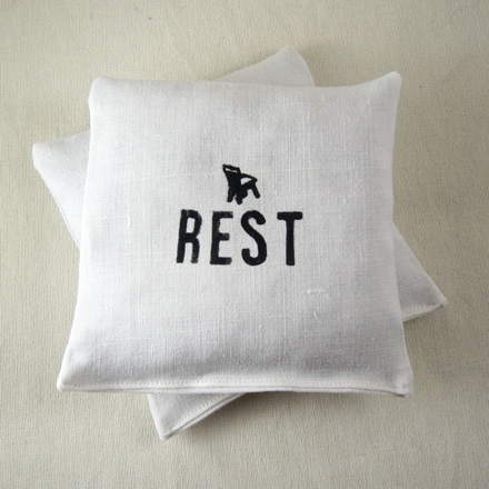 I love linens that tell me what to do, especially when the advice is good for me. You can find these and more at Lapomme, a shop run by Apol Lejano-Massebieau filled with beautiful handmade items.