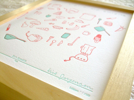 Eva sent me a note telling me about the newest print that’s out for the The Sycamore Club, which delivers a new letterpress print to your mailbox every month. The one shown here is their latest, and is created by Kirk Jorgensen, Eva’s hubby and partner in crime and it’s only available in a limited run of 100.