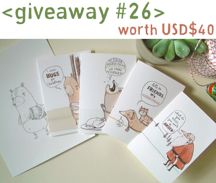 57 Replies to “Giveaway #26: Karen Cheung’s critter & cards!”