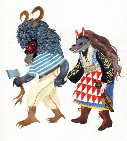 If you love folk art, then you’ll surely love Stacey Rozich’s bold folk drawings done in gouache and watercolor. Born and raised in Seattle, Washington, she studied Illustration at California College of Arts in San Francisco and is quite the whiz in simple pen and ink line drawings.