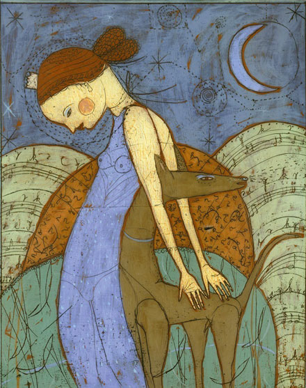 Jenny Mendes’ ceramic sculptures are characters unto themselves – one look at them and you can almost picture them talking and coming to life (like on the telly!) She’s a full time artist based in Ohio, and she offers giclee prints for sale in her Etsy shop that are prints of her original terra sigillata painting on a clay tile. She’ll return in February with more ceramic works, so until then you can see a collection of her wall birds here.