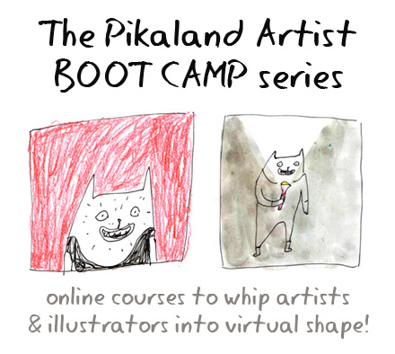To solve these problems, I’ve teamed up with the ever fabulous cat drawing lady Jamie Shelman to offer the Pikaland Artist Bootcamp so that we can teach those who really are keen and interested to whip themselves into virtual shape. If you’ve ever joined Jamie’s online courses (I have!) she offers great insight into artists works and points out to you what story you’re telling with your work — even if you aren’t aware of it yet.