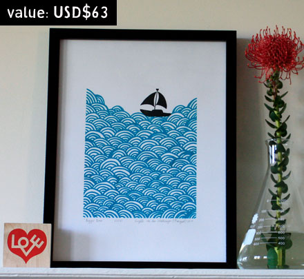 Luzelle is giving away a Bigger boat screen print in bright turquoise worth USD$63, silk screen printed by hand. The print measures 15” x 11” (A3 size).