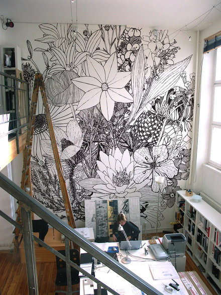 A dreamy office, I love that amazing wallpaper