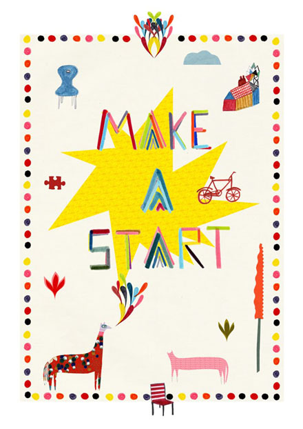 YES! Just do it. Just start that project you’ve been meaning to. Perhaps it’s cleaning out a corner of your place for art making, or grabbing a pencil and start making scratches in that poor abandoned sketchbook. Get to it! If you need a reminder, this image is being sold as a print by the amazing Thereza Rowe. So turn off the internet (but please come back and visit us again) and just make a start!