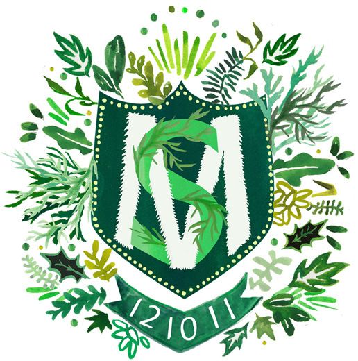 Happy Menocal is an illustrator and fine artist who lives in New York City, and I love her custom heraldry portfolio that’s filled with fun, whimsical crests! They’re very useful on wedding invites, announcements and even as a personal monogram or logo.