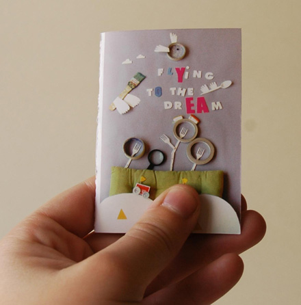 The lovely Jenny of Be Happy Now just made these lovely little handmade books that includes 35 of her best illustrations. Each one is lovingly handmade and carries the title Flying to the Dream.
