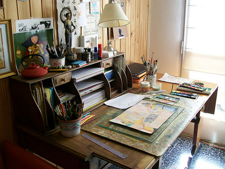 Loving the work and process of Gustavo Aimar. He has a few other blogs that are interconnected: here, here where he extends invitation for other illustrators and artists to come and post their drawings, as well as a little shop where he sells his original drawings. Follow his wonderful Flickr stream too for more images of his works and to see glimpses of his studio.