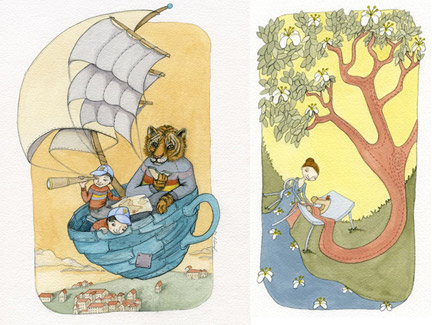 A sketch from her portfolio site; An illustration from Mister Fromfaraway