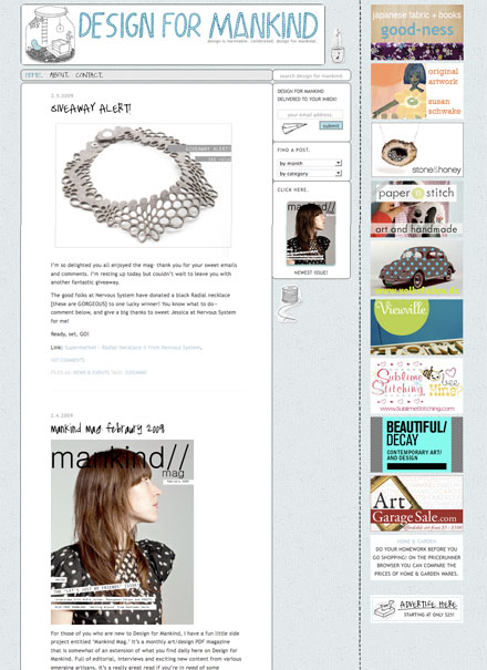 Oh not at all—— any and all submissions are welcome, in whatever way you choose. My email address is erin{AT}designformankind.com, and I’m always available to chat about anything! If you do send a press release, however, it’s always nice to read a few personalized sentences prior to the actual press release. Otherwise, I get a bit bored [I won’t lie!]. 😉