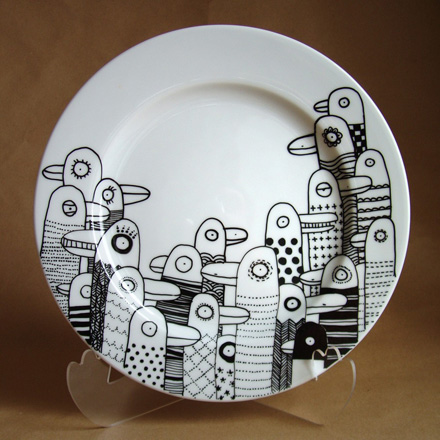Luka from Lithuania draws on ceramic items like plates, cups and saucers. I love her black and white pieces the best – somehow they all pop out better against the white background. And no, you can’t eat on them, although you can stare at them as much as you want!