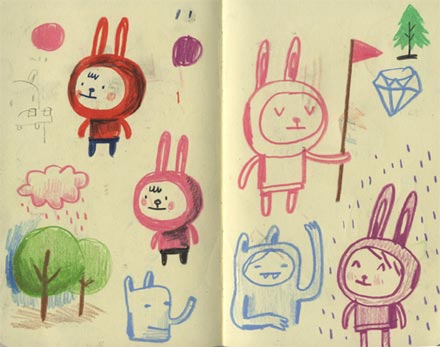 His work is fresh and funny — I love the dialogs between his characters and his expressive linework; and his illustrations documented in his blog.