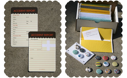 From her 25 Project: The Accident Report Cards; The Pattern Pin Packs