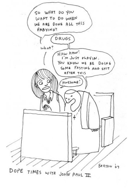 Yes, I’ve posted her up at my other blog, but that doesn’t count. Especially when I think her comics about John Paul II is funny and sweet at the same time (I hope this isn’t offensive in any way!).