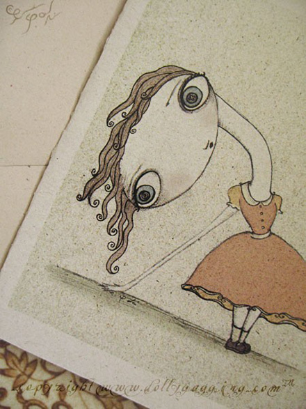 DollyGagging is a shop helmed by Emily Ipolani and footed by Erik Stein in California, where she recently put up her limited edition ACEOs and postcard prints for sale.