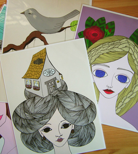 I am a fan of Jennifer Judd McGee of Swallowfield’s work because of her fearless palette. I have a good reason for this — it’s because I am freaked out by my lack of coloring skills, and also love how she incorporates beautiful colors into her work. Besides illustrations, she also does mixed media collages, which I think are fantastic too; and her works are inspired by her coastal surroundings in Maine.