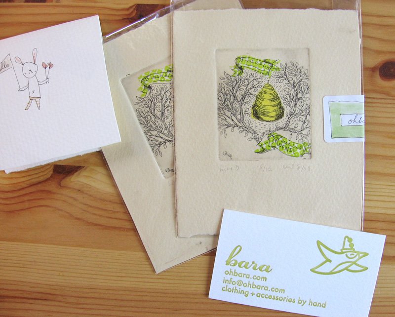 She doesn’t have a shop yet (it’s slated to open in November), but she made these exclusive little etchings with chine collĂ©e (which you won’t find anywhere else!) They’re so precious, and I absolutely am in love with her work. You can also see and read about one of her projects, the La Carte Postale, a documentary about her making and sending postcards as she goes through the book by Jacques Derrida called The Postcard: from Socrates to Freud and Beyond.