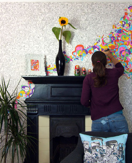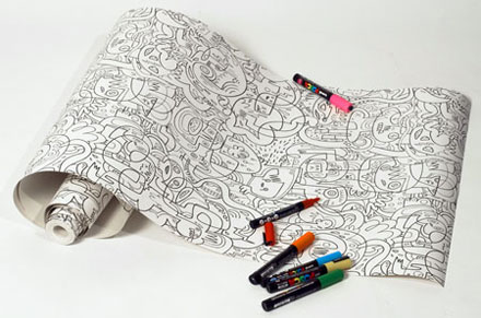 Ninteenseventythree have produced this great wallpaper by Jon Burgerman where you can color in to your hearts content. I thought Jon’s work was very familiar, and no wonder — he did one of the posters that is on sale as IKEA (the colourful one with lots of doodly characters on there!)