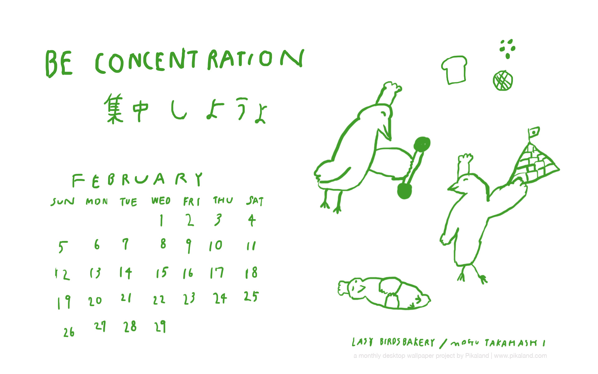 Pikaland desktop wallpaper/calendar series: Feb 2012 / Mogu Takahashi