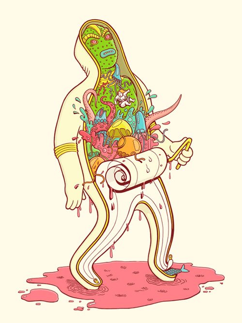 Brosmind is a Barcelona-based studio founded by brothers Juan and Alejandro Mingarro in 2006. You gotta love all their projects (they have a few awesome personal projects, one of which is What’s Inside (pictured second from top) – a collection of 20 characters that are opening themselves with the help of another character from the SHE project). It’s amazing to see how they’ve created entire universes with their illustration; and I’m hoping for more products too – like this amazing Brosmind RV (available in their shop). Who needs a Batmobile when you can be decked out in illustrations in a Brosmobile?