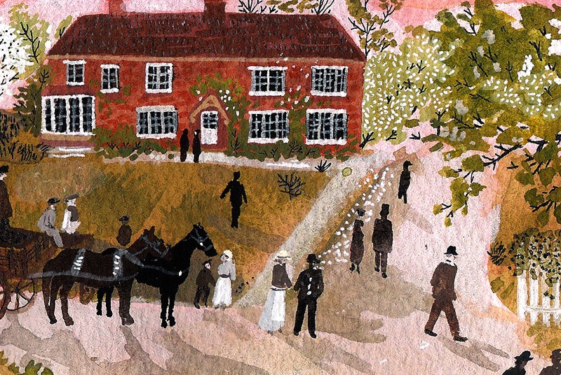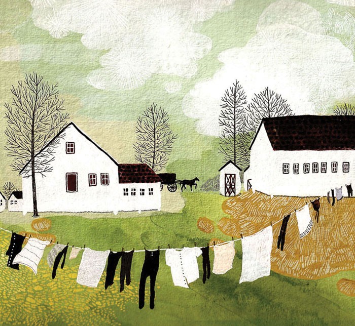 Loving the quirky, folk arty feel of Kentucky based artist Becca Stadtlander. Her art has a fantastic sense of place that makes me want to visit Kentucky (just go to West Virgina and make a left) and calls to mind the works of Grandma Moses.