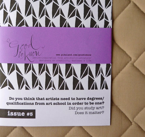 The Good to Know Project is full of advice + inspiration from artists/illustrators/designers on creativity, business and life. This issue has 51 artists who shares about whether an art education is necessary, and how it impacted their lives. Also, a special thanks to Colouring Outside the Lines zine’s founder, Melanie Maddison who has generously compiled 10 previously interviewed artists who also shared their thoughts about the topic (we’ve placed this is a special section in this issue!)