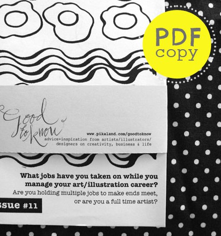 The Good to Know Project is full of advice + inspiration from artists/illustrators/designers on creativity, business and life. This issue has 51 artists who share with us their thoughts on the subject!